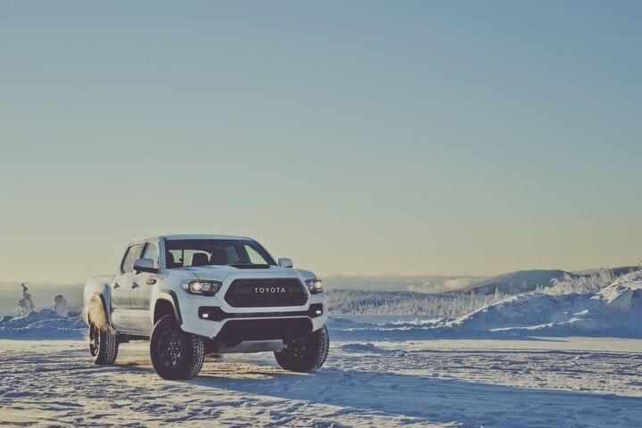 Vanbuiten zien we een Tacoma met 16-inch lichtmetaal waar speciale all-terrainbanden omheen zijn gevouwen. Bodemplaatbeschermers, zwarte afwerking in de koplamp- en achterlichtunits, TRD-badges, een luchthapper op de motorkap en zwarte wielkasten: het ziet er allemaal aardig stoer uit. Vanbinnen krijgt de Tacoma de beschikking over een uitgebreid navigatiesysteem, een met leer bekleed stuurwiel en TRD-logo's her en der.