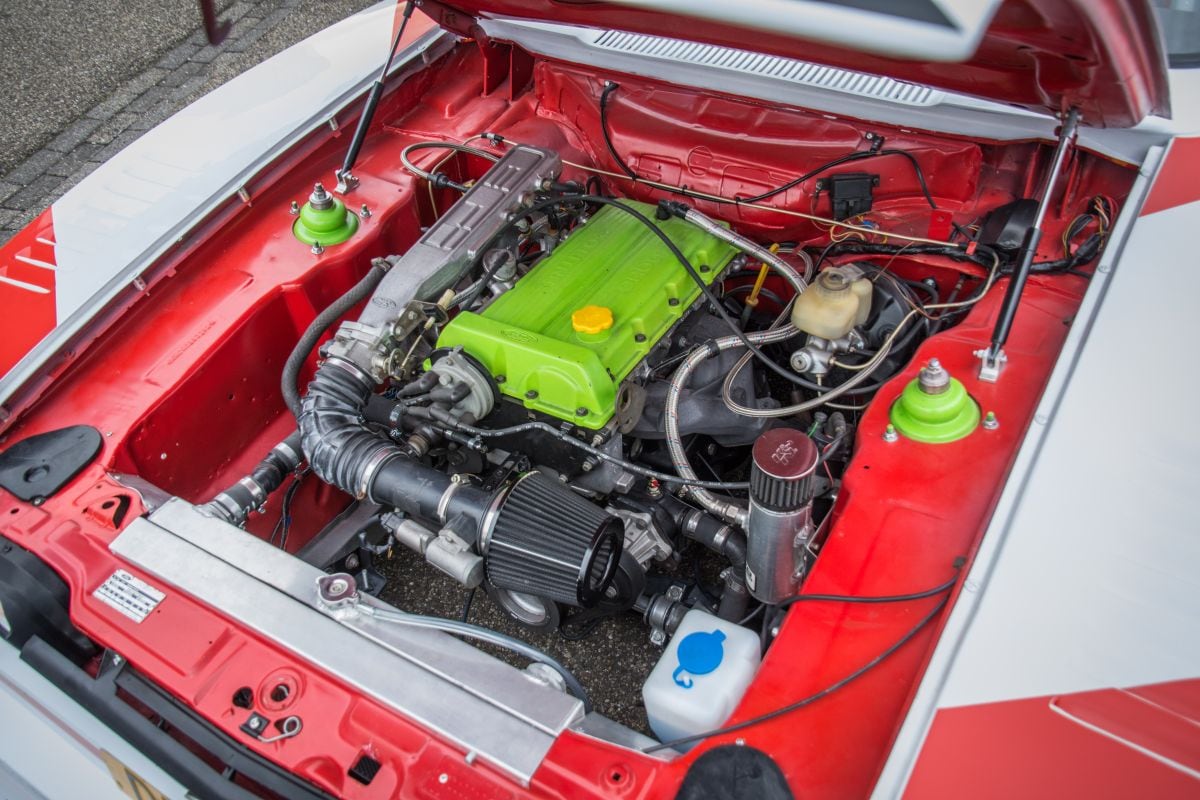 Nog even over die vlammen uit de uitlaat. In de Capri van Bram en Hans lag een 1,6-liter-blokje. Met een krappe 75 pk was dat bepaald geen strepentrekker. “Niet indrukwekkend, maar het turboblok uit de echte Zakspeed nabouwen zou toch net wat te duur worden”, zegt Hans. Hij en Bram bedachten een alternatief en kochten een sloopauto: een Ford Sierra met een tweeliter DOHC-blok onder de kap. “Toen stond er dus een wrak voor de deur. Dat is niet echt netjes tegenover de buren, dus dat moest daar snel weg. In mijn haast ben ik toen iets te fanatiek te werk gegaan. Ik knipte de kabelboom door zonder te bedenken dat dit motorblok een ECU heeft, mét een startblokkering. Het heeft me heel wat dagen gekost om dat te herstellen.”
