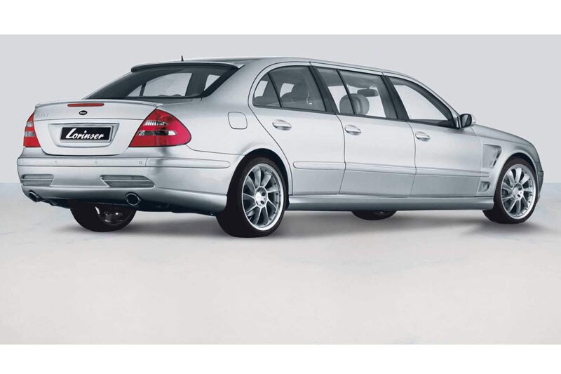 Lorinser kan niet alleen tunen. Ook voor een flinke verlenging, draaien ze hun hand niet om. De E-klasse die door Lorinser wordt verlengd, is 1,05 meter langer dan een standaard exemplaar. Lorinser kan de E daarna voorzien van elke gewenste tierlantijn. Er is een speciale grote voorbumper met geïntegreerde mistlampen. Verder zijn er spatbordverbreders en is er een achterskirt waarin indrukwekkende uitlaatpijpen zijn weggewerkt. Ook zijn er brede banden die naar keuze de maat 19 of 20 inch hebben.