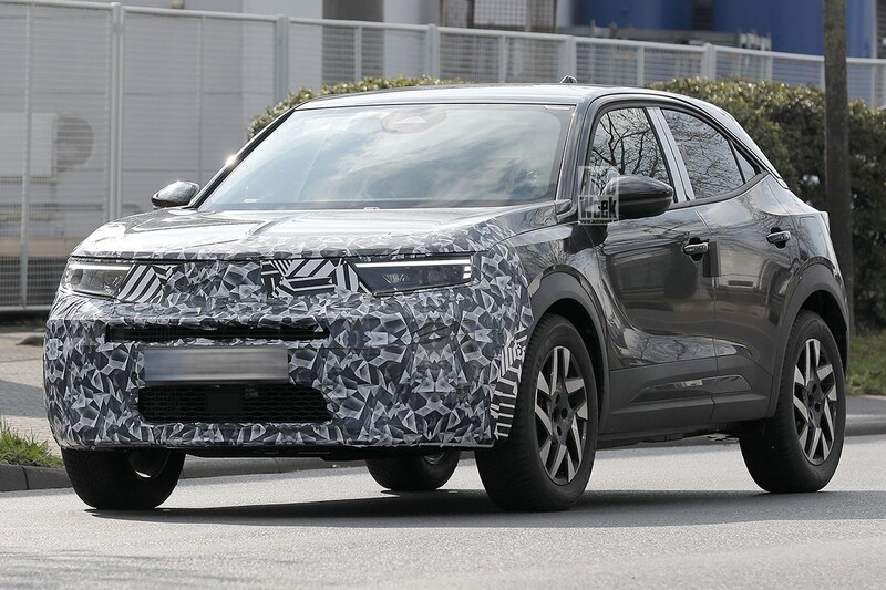 Wordt de Opel Mokka na zijn facelift dan totaal anders? Welnee. Sterker nog: we achten de kans vrij groot dat je straks goed moet kijken om de verschillen met het origineel te zien. Hoewel dit gesnapte testexemplaar nog rijkelijk bedeeld is met camouflerend stickerwerk, is duidelijk dat de voorbumper en het gaaswerk in zowel de bovenste als onderste koelopeningen is herzien. Meer nieuwigheden zien we in de invulling van de lichtunits. De haakvormige led-indeling van de koplampen en achterlichten blijft behouden, al is het kleine verticale deel ervan straks gesegmenteerd. Die vernieuwde lichtsignatuur zagen we op de Experimental en op deze knotsgekke Rocks-extreme al. De gefacelifte Corsa en ook de Frontera te heten opvolger van de Crossland krijgt een dergelijke signatuur, hetzelfde geldt voor de misschien wel Monterey te heten opvolger van de Grandland. Zowel achter- als voorop de vernieuwde Crossland komen we straks waarschijnlijk dit vernieuwde Opel-logo tegen.