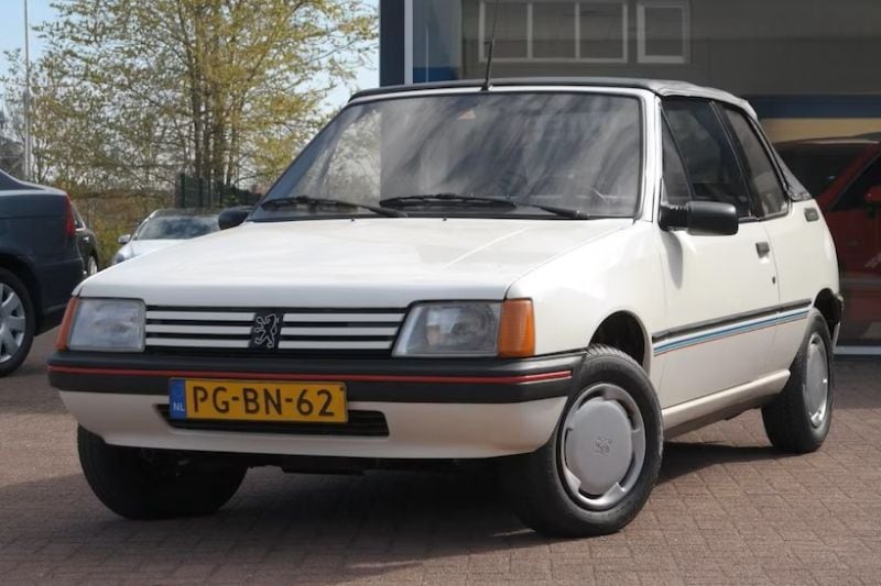 Indien het wel wat karakteristieker mag dan een jaren-90-Japanner, klik dan hier. Dan stuit je op een Peugeot 205 Cabrio met net aan drie knoppen op het dashboard, een handbediende choke, originele wieldopjes, oranje knipperlichten en een lekker mediterraan lakje: wit. In dit rijtje is de 205 het kaalst en op €49 na tóch het duurst. Wie mooi wil zijn moet pijn lijden, laten we maar zeggen. Zelfs voor een kleine €5.000 koop je tegenwoordig geen snaarstrakke 205 Cabrio meer, maar de joie de vivre die van het tafereeltje afspat als je met een zonnebril op je neus in deze Peugeot voorbijrijdt laat zich lastig in euro's uitdrukken. Voor wie heel wat anders zoekt dan een dikke Audi of een wellicht wat al te degelijke Opel.