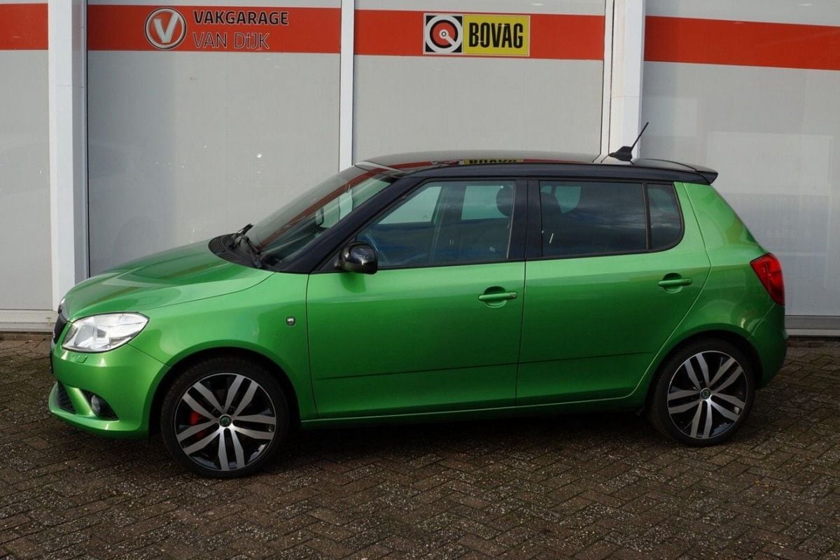 Denk je aan een 'hot hatch', dan denk je zeker niet meteen aan een Skoda. In essentie is de Skoda Fabia RS onderhuids een Polo GTI van de vijfde generatie. Hij werd geleverd van 2010 tot en met 2014 en had dezelfde 1.4 TSI met 180 pk en 250 Nm koppel onder de kap. Deze krachtbron was voorzien van zowel een turbo als een supercharger. In de Fabia RS is hij altijd gekoppeld aan een zeventraps DSG. De sportieve Fabia is te herkennen aan een agressievere voorbumper, 17-inch wielen met daarachter rode remklauwen en een diffuser met dubbele uitlaat. In het groen met contrasterend zwart dak oogt hij allerminst saai. Wel is het oppassen geblazen met de motor. De 1.4 TSI staat bekend om zijn hoge olieverbruik, waarbij in sommige gevallen de complete motor vervangen moet worden. Vanaf 2012 werd het iets beter, maar nog steeds dient hier goed naar gekeken te worden bij aanschaf. Verder is ook de DSG een duur component om te vervangen. Dit exemplaar heeft ruim 207.000 km gelopen en valt nèt binnen het budget.