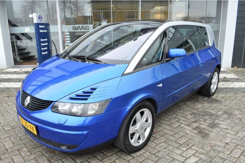 De Renault Avantime is gebouwd van 2001 tot 2003. Zijn uiterlijk was zeker voor die tijd behoorlijk futuristisch, met grote glaspartijen en scherpe lijnen. Je wil hem zeker niet te krap parkeren, al heeft Renault voor de enorme portieren nog wel een vernuftig scharniersysteem ontworpen. 'Avantime' is overigens een samentrekking van 'avant' (voordat) en 'time' en betekent in feite: 'zijn tijd vooruit'. Dat suggereert trouwens ook dat de Engelse uitpsraak van 'Taim' de juiste is. De Avantime werd gebouwd door Matra in het Franse Romorantin. Het publiek viel niet voor het uiterlijk van de Avantime. De buitenissige MPV-coupé werd nauwelijks verkocht, wat mede bijdroeg aan de korte productieperiode. Dit exemplaar is knalblauw, heeft net iets meer dan 100.000 km gelopen en beschikt over een 3,0-liter V6 met 210 pk, de sterkste motor. In 8,6 seconden staat er 100 km/h op de snelheidsmeter en de eigenzinne Fransoos dendert door tot 220 km/h. Of je dat met het relatief zachte onderstel ook wilt, is weer een ander verhaal.