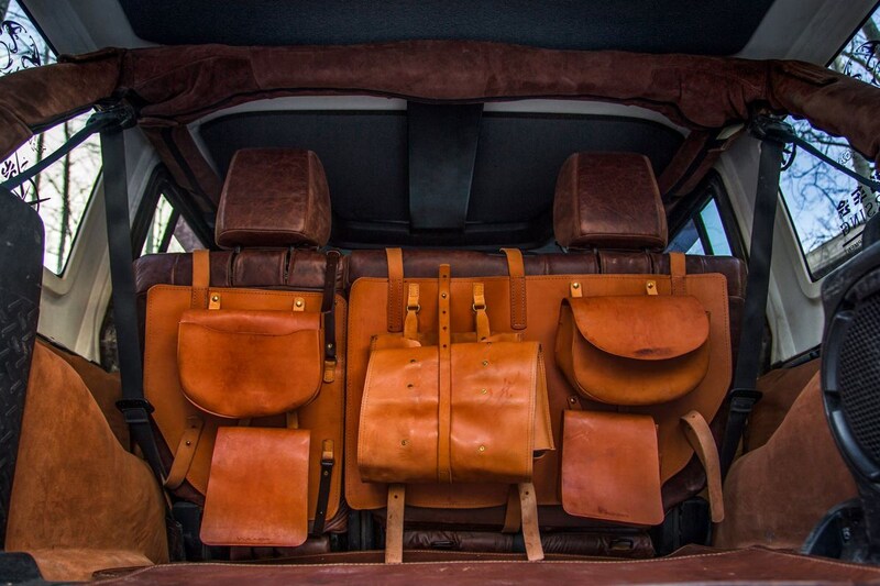 Ook het interieur is op eigenaardige wijze versierd. We vinden enorme hoeveelheden bruin leer, een koperen pookknop in de vorm van een schedel en leren tassen achter de achterbank. Op de deurpanelen heeft Vilner een leren opbergtas gestikt. Bijzonder.