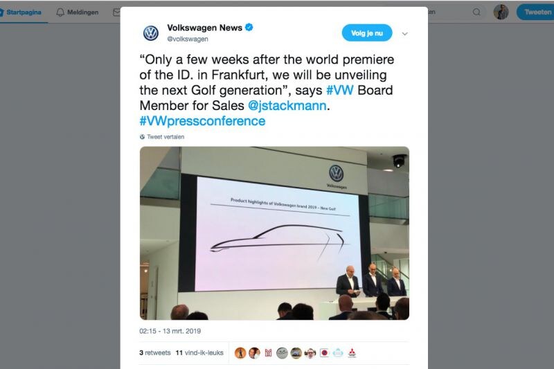 Tijdens de persconferentie zegt Jürgen Stackmann, bestuurslid van Volkswagens verkoopafdeling, dat de onthulling van de achtste generatie Golf "enkele weken na die van de ID plaatsvindt". Die elektrische ID laat zijn gezicht tijdens de IAA in Frankfurt zien. Dat evenement staat voor halverwege september op de planning. Met de uitspraak van Stackmann is het aannemelijk dat iedereen tot medio oktober of november geduld moet hebben voor de nieuwe Golf.