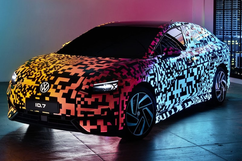 De Volkswagen ID7 moet je in feite zien als het elektrische alternatief voor de Passat. Het is de productieversie van de in 2022 gepresenteerde ID Aero, een studiemodel dat al behoorlijk productierijp leek. Hoewel de Volkswagen ID7 vooralsnog alleen in een kleurrijk camouflagepak is te zien, valt al te concluderen dat de elektrische sedan als twee druppels water op zijn conceptuele voorbode lijkt. We zien een licht golvende schouderlijn, in de portieren verzonken handgrepen, een herkenbaar ID-front en visueel aan elkaar geknoopte achterlichten. Overigens lijkt het erop dat de ID7 op termijn ook een Variant-broertje krijgt. Een elektrische stationwagon dus. Met de ID Space Vizzion gaf Volkswagen daarvan in 2019 immers al een voorproefje.