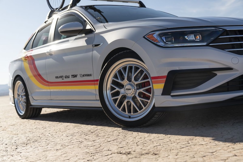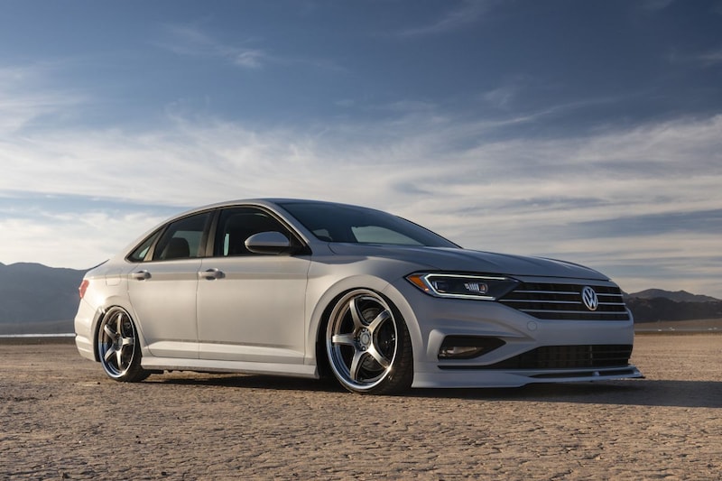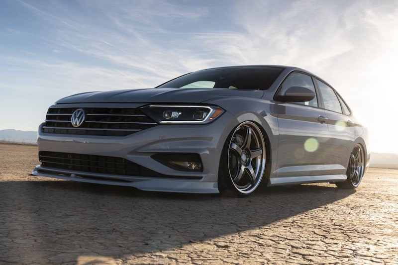 We beginnen zoals Volkwagen dat zelf ook doet: met de Jetta van verlagingsverenleverancier H&R. Het bedrijf heeft een rode Jetta R-Line bij de kladden gegrepen en die om te beginnen eens een fijn eindje naar beneden gehaald met een stevige schroefset. Spoorverbreders en indrukwekkende 19-inchwielen maken de 'stance' compleet. Verder zijn er onder meer andere remmen en zien we een bodykit van Air Design USA, die onder meer uit een opvallende 'ducktail'-spoiler bestaat.