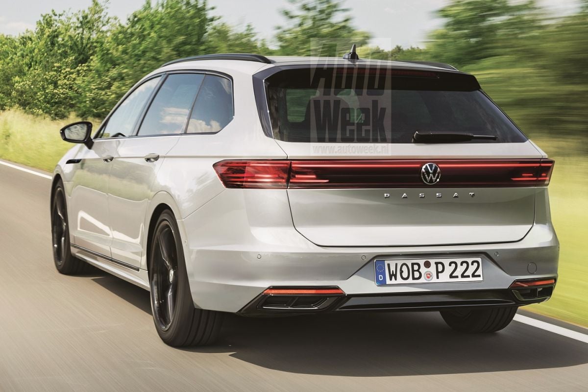 Wolfsburg blijft zijn MQB-modellen voorlopig naast de volledig elektrische MEB-line-up voeren. Het zorgt ervoor dat de keuze voor elektrisch rijden of conventionelere vorm van aandrijving in één oogopslag voor je ligt als je bij Volkswagen de showroom inloopt. Je gaat óf voor een volledig elektrisch model, óf voor een traditioneler type. De ID3 of de Golf, de ID4 of de Tiguan, enzovoort. De volgende Passat wordt dan ook een direct herkenbaar model dat uiterlijk in de pas loopt met de Golf en duidelijk nog niet op de ‘alternatieve toer’ gaat. Op deze illustraties is dat goed te zien. De Passat krijgt naar verwachting een front met stevige Golf-invloeden, met behoorlijk geknepen koplampen die met behulp van een vrij dunne grille aan elkaar zijn verbonden. Aan de achterkant wordt de Passat mogelijk wat eigenzinniger met een dikke ‘balk’ verlichting over de hele breedte van de kont. Een kenmerk dat toch al behoorlijk aansluit bij de auto waarvan we verwachten dat die het elektrische alternatief voor de Passat wordt: de productieversie van de ID Space Vizzion. Hoe pakt Volkswagen het dan aan met de Passat sedan? Nou, niet. Die komt namelijk zo goed als zeker niet. De voor Europa bestemde Passat Variant verkoopt al jaren beter dan de versie met kont en uiteraard scheelt het Volkswagen de nodige ontwikkelingskosten als het de mogelijk laatste generatie van de Passat enkel als Variant in de steigers zet. Het moet immers nog wel rendabel genoeg zijn nu de traditionele grotere middenklasser inmiddels een soort nicheproduct is geworden.