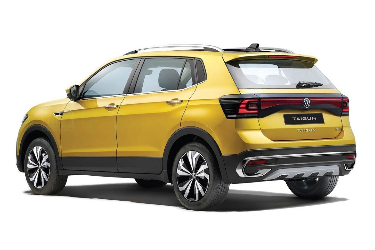 De definitieve productieversie wijkt slechts op detailniveau af van de Taigun Concept uit 2020. De auto, wiens naam een anagram is van 'Tiguan', moet het zonder vrolijke print op de C-stijl doen en is nu voorzien van typenamen. De modelnaam Taigun staat uitgeschreven onderaan de achterklep, de 19-inch wielen van de concept-car zijn vervangen voor subtielere exemplaren in de maat 17-inch en de zijspiegelkappen zijn - jawel - in carrosseriekleur gespoten. Onderhuids gaat de iets goedkopere voor de Indiase markt bestemde versie van het bekende MQB Ao-platform schuil, dat MQB-A0-IN heet. De auto is uitgerust met een 115 pk 1.0 TSI , maar wordt ook leverbaar met de 1.5 TSI van 150 pk.