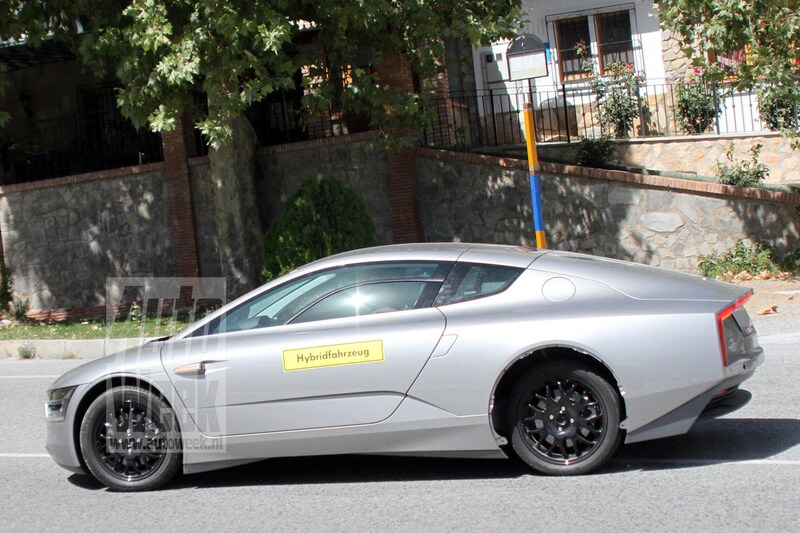 Vergeleken met het studiemodel wijkt de auto die onze spionagefotograaf in Spanje spotte weinig af. Onder de koplampen is een sliert ledlampjes gemonteerd en de beschermplaten bij de achterwielen zijn voor de gelegenheid verwijderd. Die verwachten we wel terug te zien op het productiemodel, dat in 2013 officieel de weg op gaat. Was het niet alleen om aerodynamische redenen, dan wel om esthetische want de achter heeft de XL1 een kleinere spoorbreedte van de voor en dat ziet er toch een beetje knullig uit.