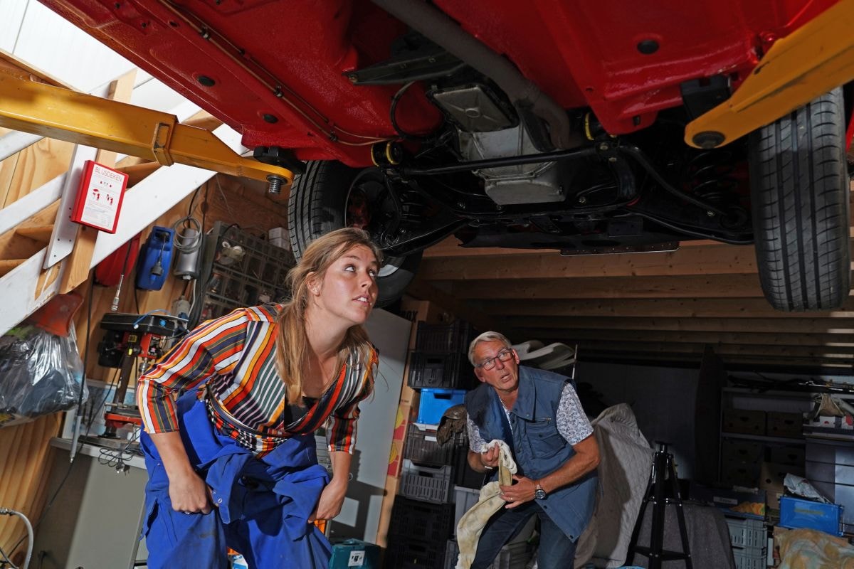 Bert en Gerlinda hebben de smaak zo te pakken dat de restauratie voorspoediger verloopt dan ze zich hadden voorgesteld. Gelukkig houdt de plaatwerker c.q. spuiter zich aan de afspraken en keert de motor eveneens op tijd terug. Het opbouwen kan beginnen. Opnieuw ziet Bert vaderlijk toe op de verrichtingen van dochter Gerlinda. “Hij is streng maar rechtvaardig in zijn aanwijzingen”, zegt ze. “Ik ben nu eenmaal geen volleerd sleutelaar. Het is al fijn dat hij me stuurt en aanwijzingen geeft. We lopen elkaar zo weinig mogelijk in de weg. Toch moet ik vaak wachten wanneer hij onder de auto bezig is en ik binnen moet zijn om interieurdelen te monteren.”