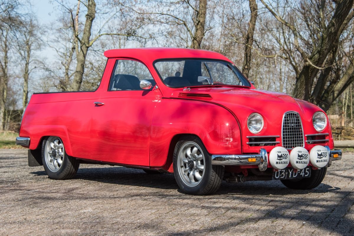Een even schitterend pareltje in de collectie is de andere Eend, een zowat in nieuwstaat verkerende Fourgonnette, die zijn 40.000 kilometer reed in de zonnige Gard, vlak boven de Franse Middellandse Zeekust. Dat is ook de ingetogen donkergroene Fiat Topolino pick-up uit 1951. Die werd als vingeroefening gebouwd door Carrozzerie Speciali, Fiats eigen ‘coachbuilders’-afdeling, die bijvoorbeeld ook tekende voor de schitterende 8V. Slechts een handjevol Topolino pick-ups zag het levenslicht, Jacques wist er één te lokaliseren in een Noord-Italiaans dorpje onder de rook van Mantua. Zowel in kleur als in afkomst contrasteert die Fiat prachtig met de kanariegele Morris Minor van de Britse Post Offices Telephones – de voorloper van British Telecom – met periodecorrecte ladder op het dak en op de zijkant een friendly reminder dat het goedkoper is om je vrienden na zes uur of in het weekend te bellen. En hoewel Saab zich nooit waagde aan de bouw van pick-ups bevindt zich in Jacques’ collectie ook een Saab 95 pick-up, die in Zweden werd gebouwd en werd voorzien van de korte neus van de Saab 93. De motorkap kan alleen dicht als de motor niet loopt, verklapt Jacques. “Maar dat maakt hem niet minder mooi.”