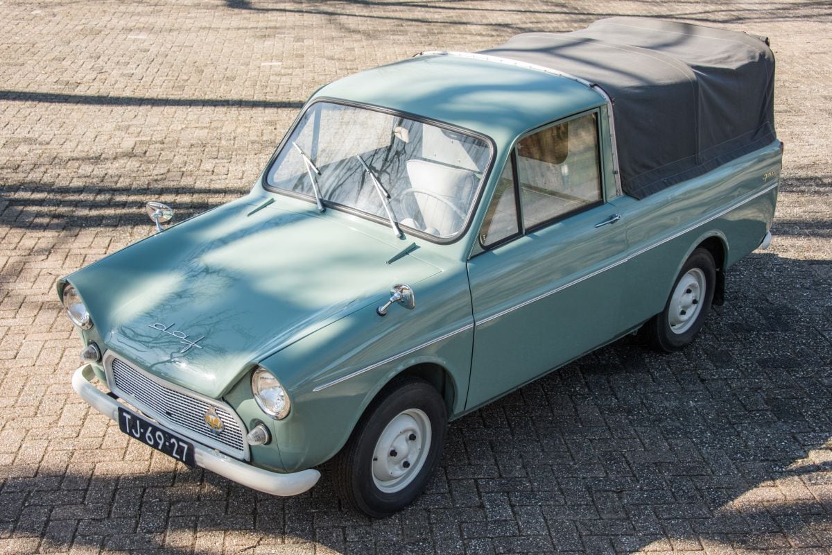 Het mooie van springen is: je kunt het doen in veel vormen en elke vorm heeft zijn eigen charme. Met pick-ups is het net zo, dat bewijzen de werkpaarden die Jacques om zich heen heeft verzameld. Soms gaat het om echte juweeltjes, waarnaar Jacques lang moest zoeken en die hij vaak vond op de meest onvoorspelbare plekken. Neem de Daf 750 pick-up, een uniek stuk, dat bijna niemand kent. De Daf 750 was de sterkere versie van de Daf 600 waarnaar de markt begin jaren 60 snakte, met onder de motorkap een motortje met 750 cc dat het vermogen opstuwde naar een niet echt duizelingwekkende 30 pk. Daarvan bouwde Daf zo’n 800 pick-ups, wist ook Jacques, maar het probleem is dat die bijna zonder uitzondering hun pensioen niet hebben gehaald. “Er bleken er nog drie te bestaan”, zegt hij. “Twee daarvan zijn in Amerika, en die derde? Je gelooft het niet, maar na lang zoeken kwam ik erachter dat die zich in mijn woonplaats bevond, waar hij van een tuinder was geweest. Nadat ik op heel veel plekken had aangebeld, vond ik de auto uiteindelijk en werd hij me gegund door de oude eigenaar. Wat een toeval, nietwaar?”