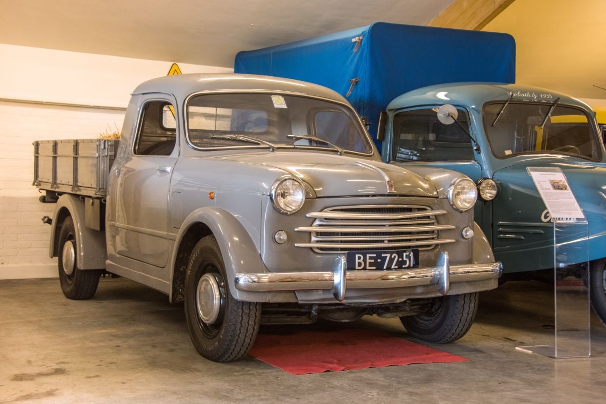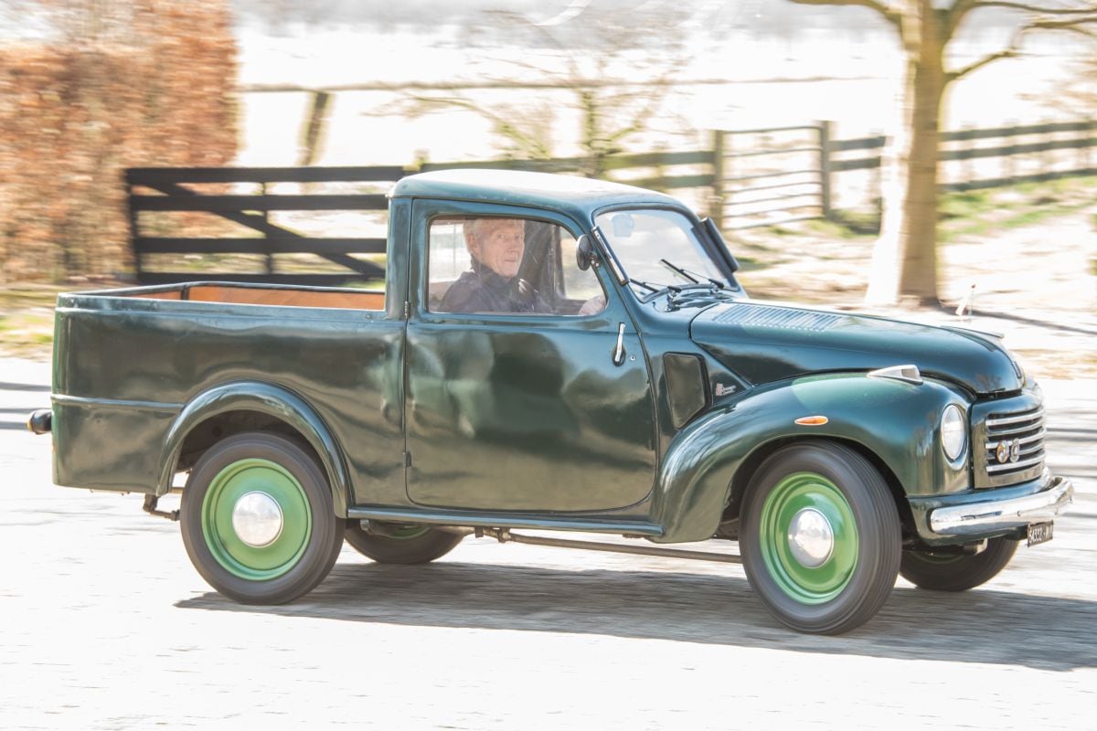 Donkergroene Fiat Topolino pick-up uit 1951