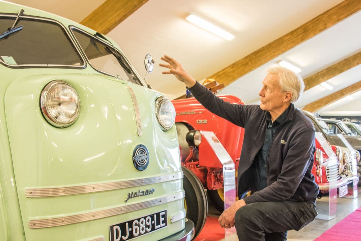 Dat is het mooiste van deze collectie bescheiden werkpaarden: Jacques vindt ze allemaal oprecht mooi. De Porsche-tractor noemt hij onomwonden kunst en ook de neus van zijn Duitse, op Volkswagen-techniek gebaseerde Tempo Matador schaart hij onder die categorie. “Kijk nou naar die Matador”, zegt hij. “Die is gebouwd in een tijd waarin alles zo goedkoop mogelijk moest, voor mensen die vooral waarde hechtten aan het werkvermogen van zo’n auto. Hoe is het dan mogelijk dat ze toch zo’n prachtige neus weten te ontwerpen? Ik weet ook wel, kunst is beleving, en dat is voor iedereen anders, maar ik voel bij mijn collectie werkpaarden meer emotie dan bij schilderkunst.”