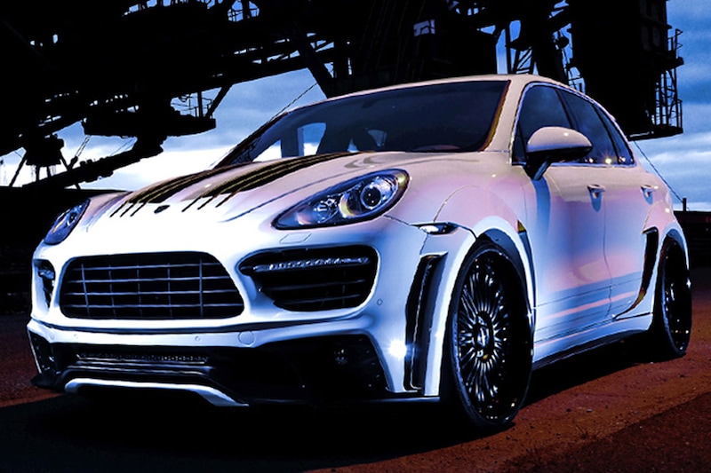De Japanners schroeven maar wat graag hun Black Bison-pakket op de Cayenne II. We zien een behoorlijk dik gemaakte Porsche met wielkastverbreders, een voorbumper met grote luchtopeningen en led-verlichting, kieuwen aan de zijkant (zowel voor als achter) en een wel heel opvallende diffuser aan de achterzijde.