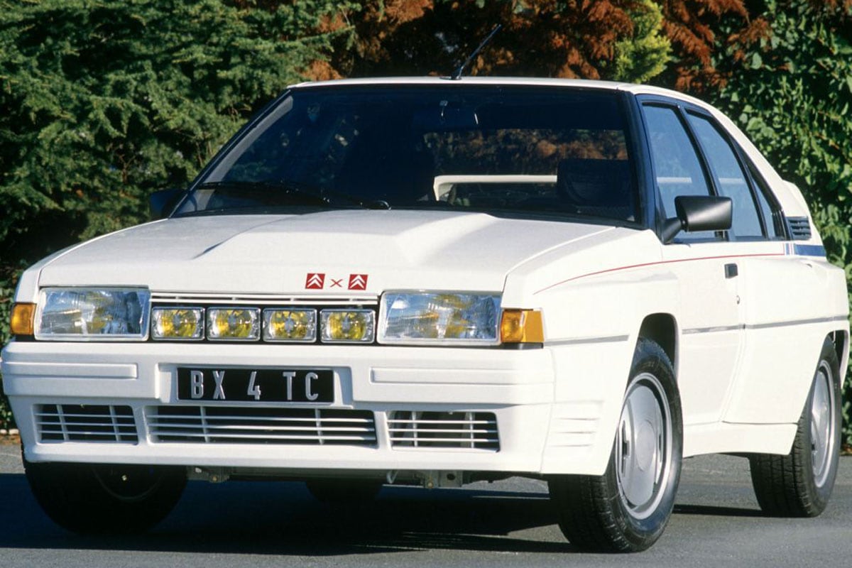 De begeerlijkste BX was zonder meer de 4TC. En niet omdat hij met zijn met 200 pk de sterkste in zijn soort was, maar meer omdat hij werd omgeven door een bijna ongelooflijk verhaal. Met de 4TC wilde Citroën in 1985 gaan deelnemen in het levensgevaarlijke Groep B-rallykampioenschap. Om aan de homologatie-eisen te voldoen moesten daarvan tweehonderd straatauto’s voor klanten worden gebouwd. Er werd een 2,1-liter turbomotor in lengterichting ingebouwd. De gewone BX had zijn motor dwarsgeplaatst, vandaar dat de 4TC een ongebruikelijk lange voorplecht kreeg. Die 2,1 werd gekoppeld aan de vijfbak uit de Citroën SM. Ook het veerbollensysteem zat er gewoon op.