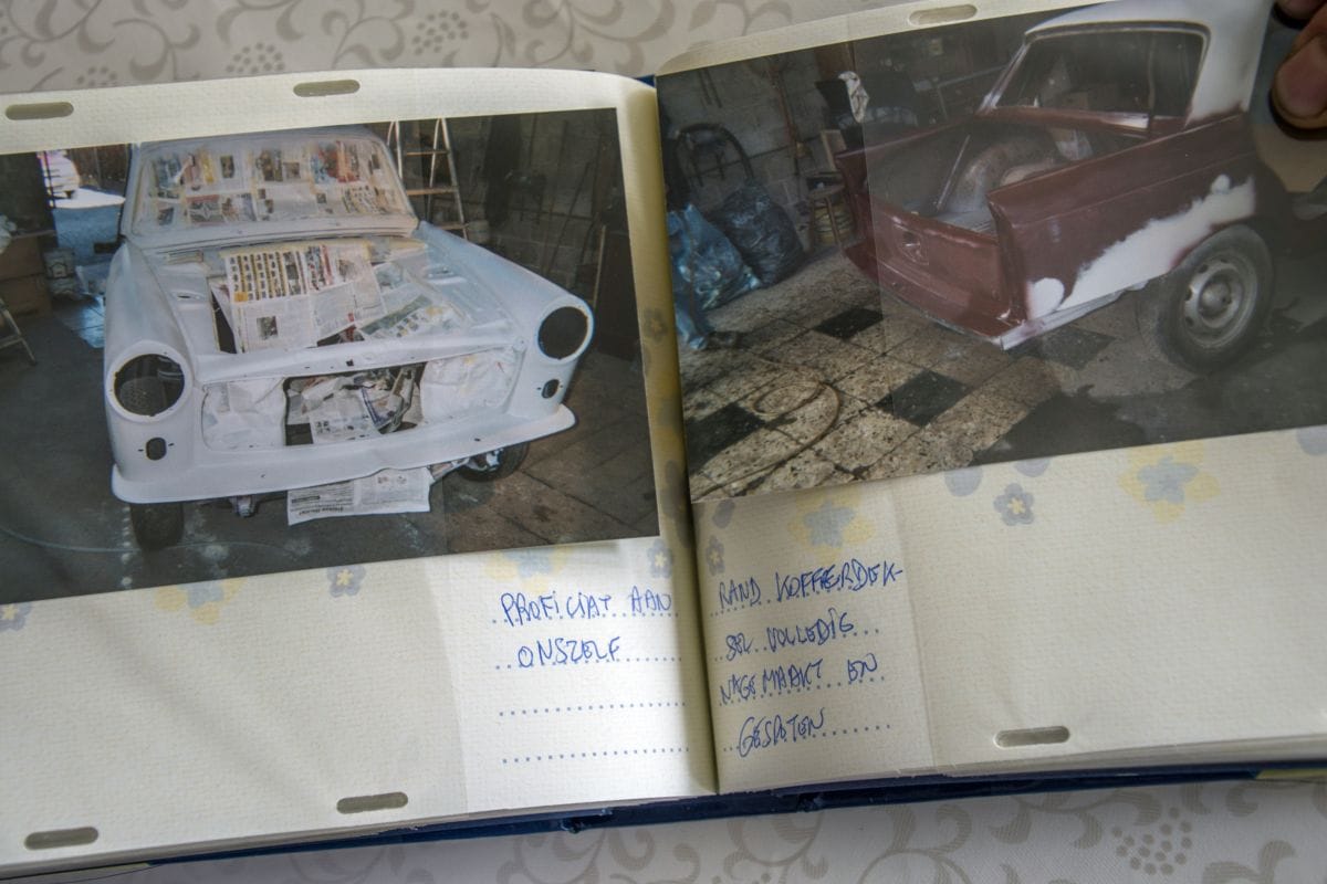“Met wat zijde gij bezig?” Denis Cnudde krimpt een stukje in elkaar bij die woorden, uitgesproken door een politieman. Begrijpelijk, want op dat moment zit hij in een Peugeot 404 zonder deuren, met slechts één stoel en een bidon met diesel aan de brandstofpomp, terwijl de diesel enthousiast op straat lekt. Het is oktober 2010 en Denis maakt de eerste proefrit met de 404, waaraan hij en zijn broer op dat moment al zo’n zeven jaar werken. “Die rit was een compleet drama”, verzucht Denis. “We hadden grote moeite om de auto aan de praat te krijgen, hij wilde maar niet draaien. Dus maakten we een bidon aan de brandstofpomp, om zo de filters te kunnen omzeilen. Toen draaide de motor wel, dus besloot ik een proefritje van honderd meter door de straat te maken. Binnen die honderd meter werd ik dus staande gehouden. Omdat wij postbode zijn, kennen we gelukkig iedereen en zien we alles. Niet alleen kennen we dus ook de politie, we voorzien die bovendien regelmatig van nuttige tips. Daarom was de agent me gunstig gezind, maar ik rijd nóóit meer zonder nummerplaat. Ik schrok me een hoedje!”