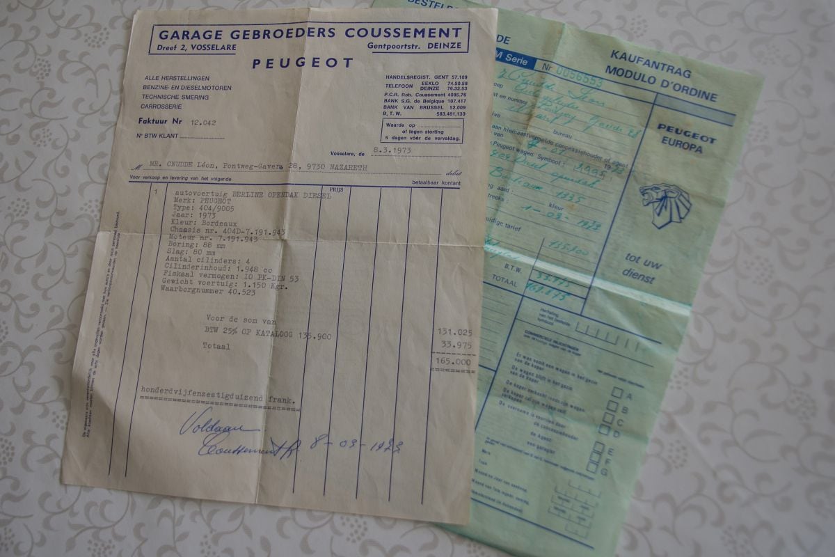 De aankoopfactuur van de Peugeot 404.