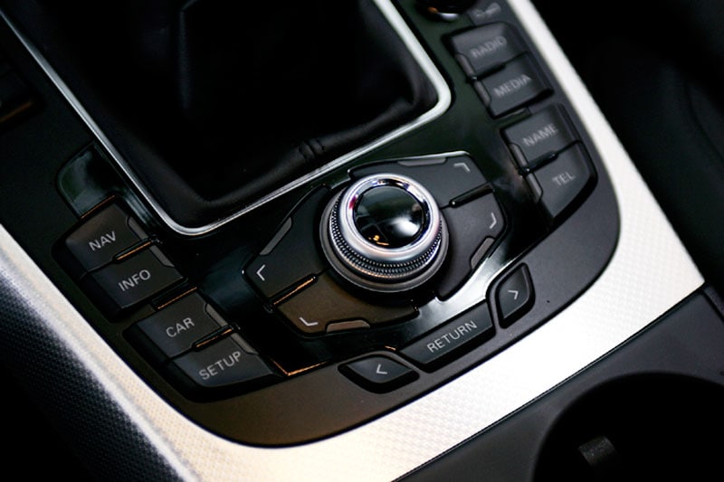 De Audi biedt een prettige werkplek. Het middengedeelte van het dashboard staat iets naar de bestuurder gedraaid waardoor het als een cockpit om je heen zit. Je kijkt uit op diepliggende klokken met een duidelijke indeling, terwijl het lekker dikke stuur bijzonder prettig vastpakt. Wel gebruikt Audi veel verschillende kleuren, waardoor het interieur wat druk wordt. De basiskleur van het dashboard is matzwart, her en der vinden we aluminiumkleurige accenten, terwijl sommige knoppen voorzien zijn van glimmend zwarte pianolak en andere details een opvallende chroomrand hebben. 't Is een beetje te veel van het goede. De aankleding is misschien wat overdreven, de vormgeving van het Audi-interieur kan ons des te meer bekoren.