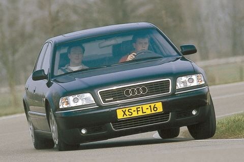 Van Audi zijn we al jaren gewend dat het zijn topmodel uitrust met vierwielaandrijving. Samen met een geavanceerd stabiliteitssysteem maakt dat het V8-vermogen opeens ook nog eens foolproof. Om een ingewikkeld verhaal kort te maken: de elektronica kan ingrijpen in bijvoorbeeld het motormanagement waardoor op de aangedreven wielen minder vermogen terechtkomt en zelfs kan het ervoor zorgen dat bepaalde wielen worden bijgeremd. Dit alles met als doel het voorkomen van een slip. De A8 is overigens onderstuurd en blijft dat onder vrijwel alle omstandigheden. Wie echter "flink door gaat", zal merken dat de auto naar een neutraal gedrag gaat in grenssituaties. Ondanks onze sportieve kijk op deze auto, gaat het de kopers natuurlijk ook in hoge mate om het comfort. De Audi is ietwat stug geveerd. Maar ook dat is slechts relatief, want kijk eens hoe hij op één oor gaat in een snelle bocht.