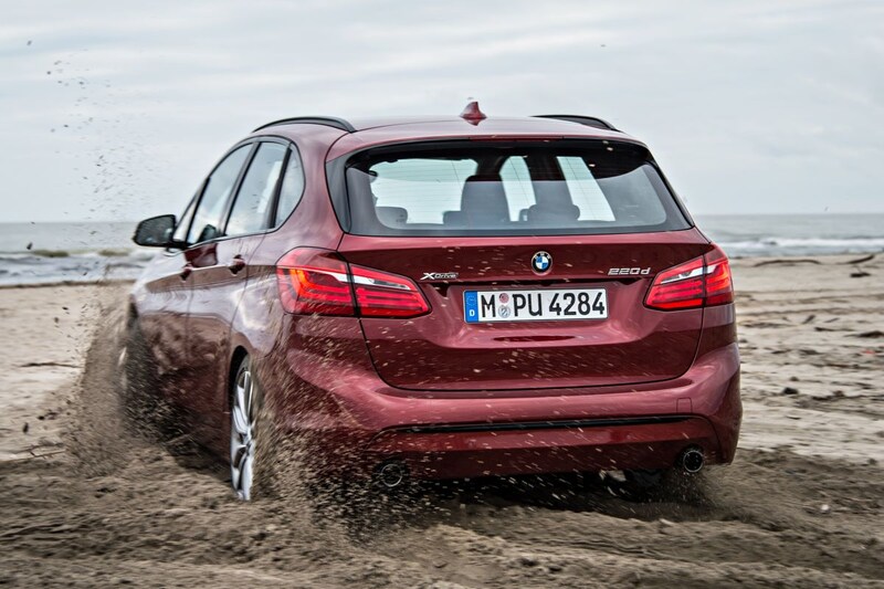 Al dan niet optioneel zijn de meeste BMW's met vierwielaandrijving verkrijgbaar. Daar hoort nu ook de 2-serie Active Tourer bij. Maar goed, eerlijk is eerlijk, permanent is die vierwielaandrijving niet; in basis is de Active Tourer nog steeds een voorwielaandrijver. Alleen wanneer de omstandigheden er om vragen worden de achterwielen met een koppeling bijgeschakeld. Anders dan de elektro-mechanische Haldex-koppeling in de Mini Countryman ALL4 reageert de elektro-hydraulische variant in de Active Tourer niet alleen meer op snelheidsverschillen tussen voor- en achteras, maar kan deze (dankzij de elektronica) bijvoorbeeld ook samenwerken met het DSC-stabiliteitssysteem om de auto in lastige situaties op koers te houden, en is eveneens actief in andere situaties waar doorslaande wielen zouden kunnen optreden. Een knop om de vierwielaandrijving permanent te maken is er niet, indirect kan het wel: wanneer we het elektronische stabiliteitssysteem uitschakelen worden voor- en achteras automatisch met elkaar verbonden. BMW levert de vierwielaandrijving uitsluitend op de krachtigste benzine- en dieselversie: de 225i en 220d, in beide gevallen alleen in combinatie met een 8-traps automatische versnellingsbak.