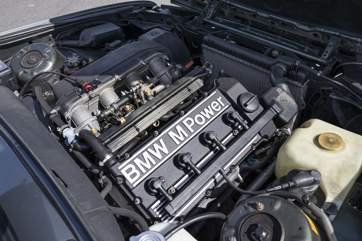 Belangrijkste uiterlijke verschillen met de echte M3 zijn vooral de spatborden en de kofferklep. Je levert slechts 3 pk aan vermogen in, uitgaande van het model met katalysator. Onderhuids is het een 325i, afgezien van het sportonderstel en een vijfversnellingsbak met dogleg-schakelpatroon. De bodykit met bescheiden achterspoiler staat hem goed, net als de bekende honingraatwielen. Dat het allesbehalve een ‘gewone’ E30 is, zie je na het openen van de motorkap. Met koeienletters staat er BMW M Power op het kleppendeksel en het inlaathuis.