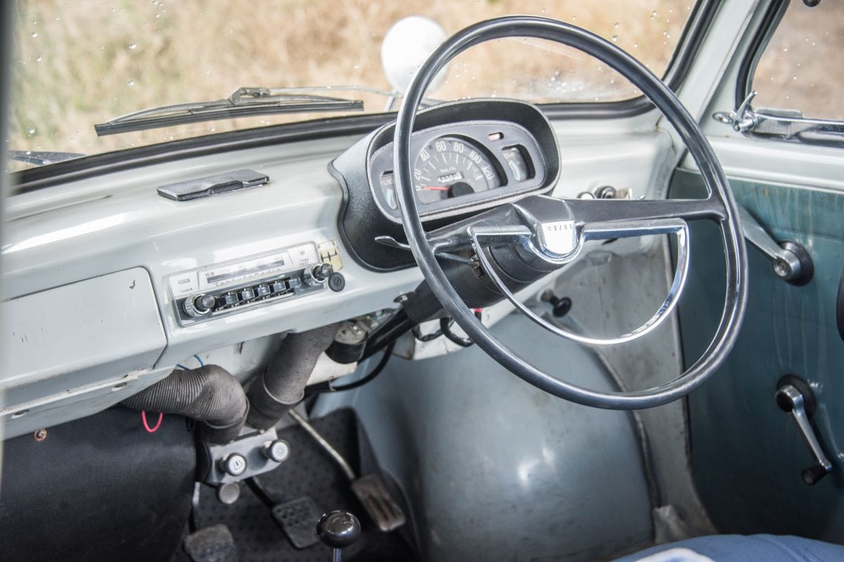 Het kost even moeite om achter het stuur te komen, maar een rondje rijden in een Mazda 360 Carol loont heus de moeite. Ondanks zijn leeftijd, die het middelbare ver voorbij is, voelt de kleine Mazda helemaal niet zo oud aan. De onafhankelijke ophanging zet hem trefzeker op zijn wieltjes, het stuurgevoel is lekker direct, de vierbak schakelt zonder aarzelen en de koppeling heeft er zin in. Dat geldt ook voor de achterin geplaatste viercilinder; die klinkt niet minder volwassen dan het motorblok in – pak hem beet – een 626 van de laatste generatie. Het meest bijzondere is dat de motor die dat volwassen geluid voortbrengt de kleinste viercilinder is die ooit in een personenwagen werd geleverd.