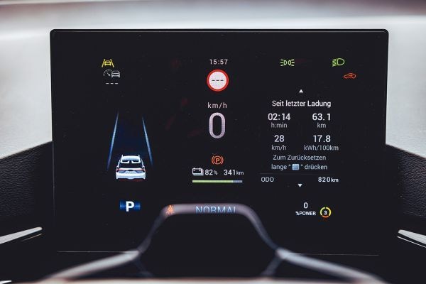We rijden met de 204-pk MG 4 in Luxury-uitvoering, die is te herkennen aan de dubbele achterspoiler. Hij heeft een straffe, dynamische afstelling meegekregen. De motor en de aandrijving zijn achterin te vinden, wat voor een flinke dosis rijdynamiek zorgt. De besturing is direct en hij voelt sportief aan. Het is bepaald geen straf om met deze EV over bochtige wegen te rijden. Maar hoe hard hebben we eigenlijk gereden? Hoeveel kilometers hebben we afgelegd? Hoe moeten we in hemelsnaam tijdens het rijden de bestemming invoeren in het navigatiesysteem? De kleine cijfertjes en lettertjes op de twee displays zijn wellicht af te lezen door jeugdige computerkids, maar niet door autojournalisten van middelbare leeftijd. Gezien de enorme ontwikkelingsstappen die MG zet, hopen we dat het merk daarmee wellicht nog aan de slag gaat.