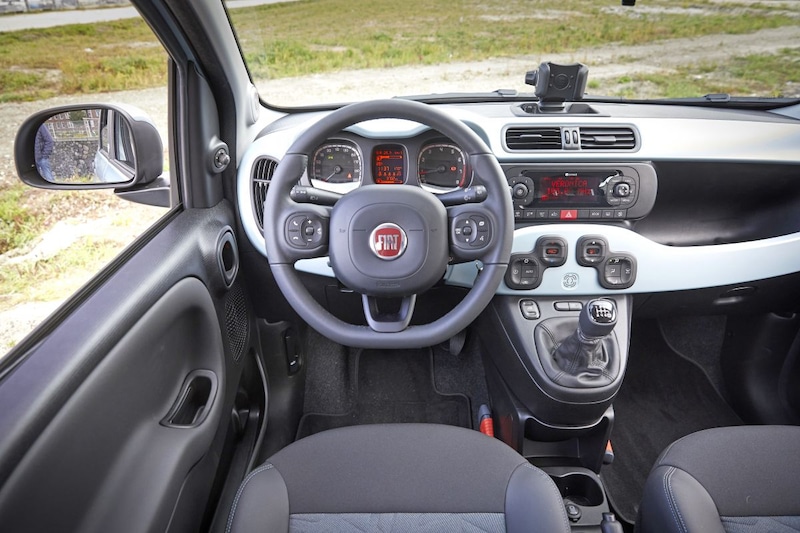 Helaas laat de Panda het op het gebied van moderne veiligheidssystemen een beetje afweten. Op de optielijst staat een actief remsysteem, maar daarmee houdt het op actieve-veiligheidsgebied wel zo’n beetje op en op de standaardversie zijn zij-airbags slechts optioneel verkrijgbaar. Een ingebouwd navigatiesysteem ontbreekt helemaal, hoewel een op het dashboard geplaatste smartphone-houder dat gemis grotendeels compenseert. Vervelender is de boordcomputer, die niet uitblinkt in gebruiksvriendelijkheid. Het is bijvoorbeeld even geleden dat we het boekje erbij hebben moeten pakken om erachter te komen hoe je de dashboardverlichting moet dimmen of een telefoon via Bluetooth moet verbinden. De zitpositie laat zich daarbij wat minder goed instellen en de Panda biedt voor zowel bagage als passagiers minder ruimte. Daarbij helpt het niet dat de onder de bestuurdersstoel geplaatste accu voor het hybridesysteem waardevolle voetruimte opslokt.