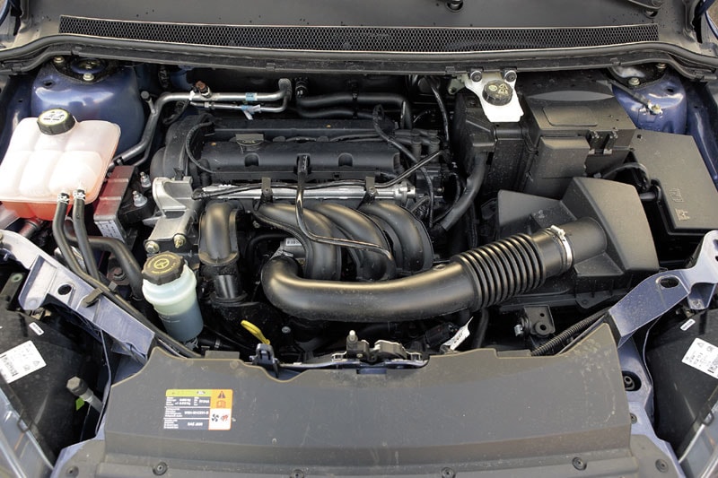De testauto heeft een zestienhonderdmotor onder de kap. De Focus zet een grote mond op. Dat valt in eerste instantie niet direct op, maar de geluidsmeter is onverbiddelijk. De Focus heeft in de basis dezelfde opzet van het onderstel als z'n voorganger. Ford heeft echter aan de voorkant grotere dempers gemonteerd en de achteras naar eigen zeggen verder verfijnd.