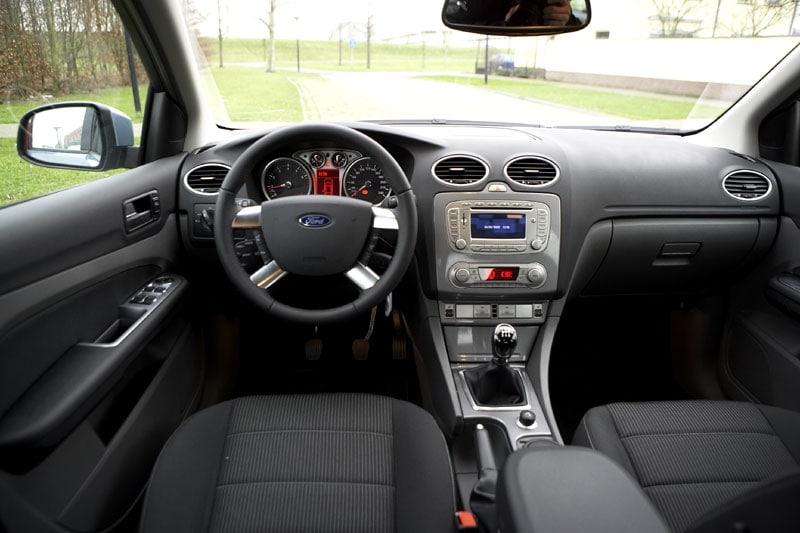 Wat zit er allemaal standaard op deze Titanium? Qua veiligheidsvoorzieningen geen klachten; ESP is standaard en de auto heeft behalve zijairbags in de voorstoelen ook gordijnairbags. Cruisecontrol, een radio-cd-speler en sportstoelen zijn eveneens aanwezig, net als elektrische ramen achter. Gescheiden klimaatregeling is ook aan boord, en al met al is dit een lekker complete Focus.