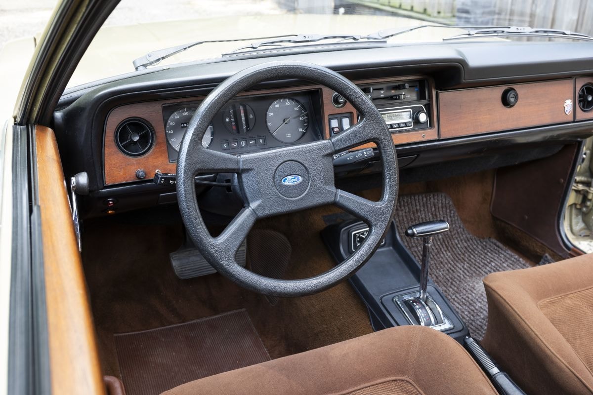 Snuffelend door de prijslijst van de Ford Taunus uit 1978 vallen vooral de eindeloze keuzemogelijkheden op. Het motoraanbod start met een armetierige 1.3 met 55 pk en loopt door tot een 2.3-V6. De basisuitvoering heet Base en die doet zijn naam eer aan. Plastic op de vloer, geen dagteller, geen hoofdsteunen en ga zo maar door. Nee, dan de Ghia op deze pagina. Het topmodel, in dit geval met een tweelitermotor. En dan nog kon de verkoper vragen: “Wilt u de vier- of de zescilinder?” Nu denk je misschien dat die V6 duurder was, maar nee hoor, de modernere vier-in-lijn kostte als Ghia ruim duizend gulden meer dan de L-uitvoering van de V6. Dat werd de keuze van de eerste Belgische eigenaar van deze Taunus en hij spendeerde nog wat extra franken aan een schuifdak, een automatische transmissie, een radio en metallic-lak. Het met vinyl beklede dak is vanaf de GL al standaard, de Ghia vult dat aan met onder meer koplampsproeiers, een toerenteller, lichtmetalen wielen, velours bekleding en verlichting in de bagageruimte.