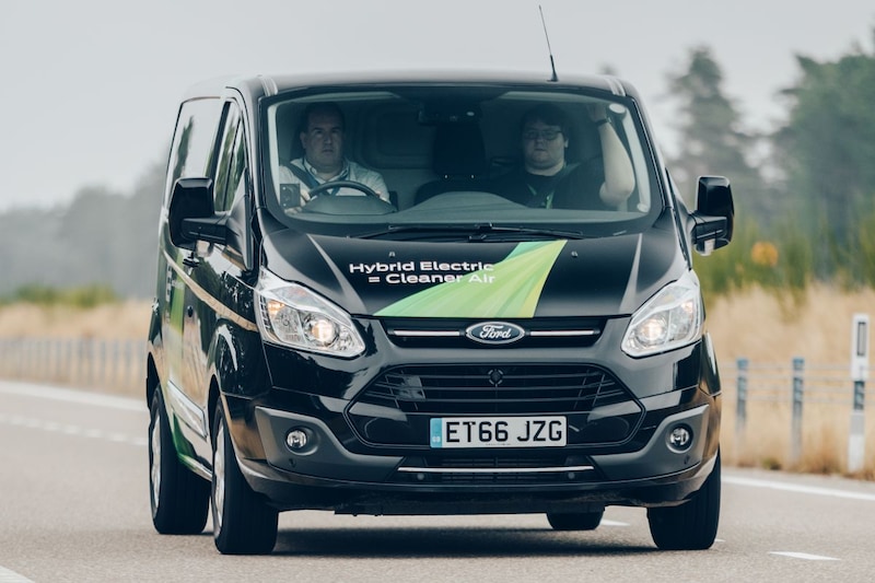 Het zijn ontnuchterende cijfers waarmee Ian Porter komt. De hoofdingenieur van de Transit Custom heeft samen met Transport of London becijferd dat 75 procent van het vrachtvervoer in en rond de Britse hoofdstad per bestelwagen gebeurt. Op piekmomenten steken per uur 7.000 Light Commercial Vehicles (LCV) de rivier de Theems over. Dat zoveel dieselmotoren funest zijn voor de luchtkwaliteit, weet het kleinste kind. Dat er iets aan moet worden gedaan, snappen ze nu ook bij Ford, getuige de Transit Custom, die vanaf eind 2019 ook als benzinehybride is te krijgen. Daarmee is de eentonner van het Blauwe Ovaal een milieuvriendelijk alternatief voor de volelektrische bestellers die andere merken inmiddels ook in het programma hebben.