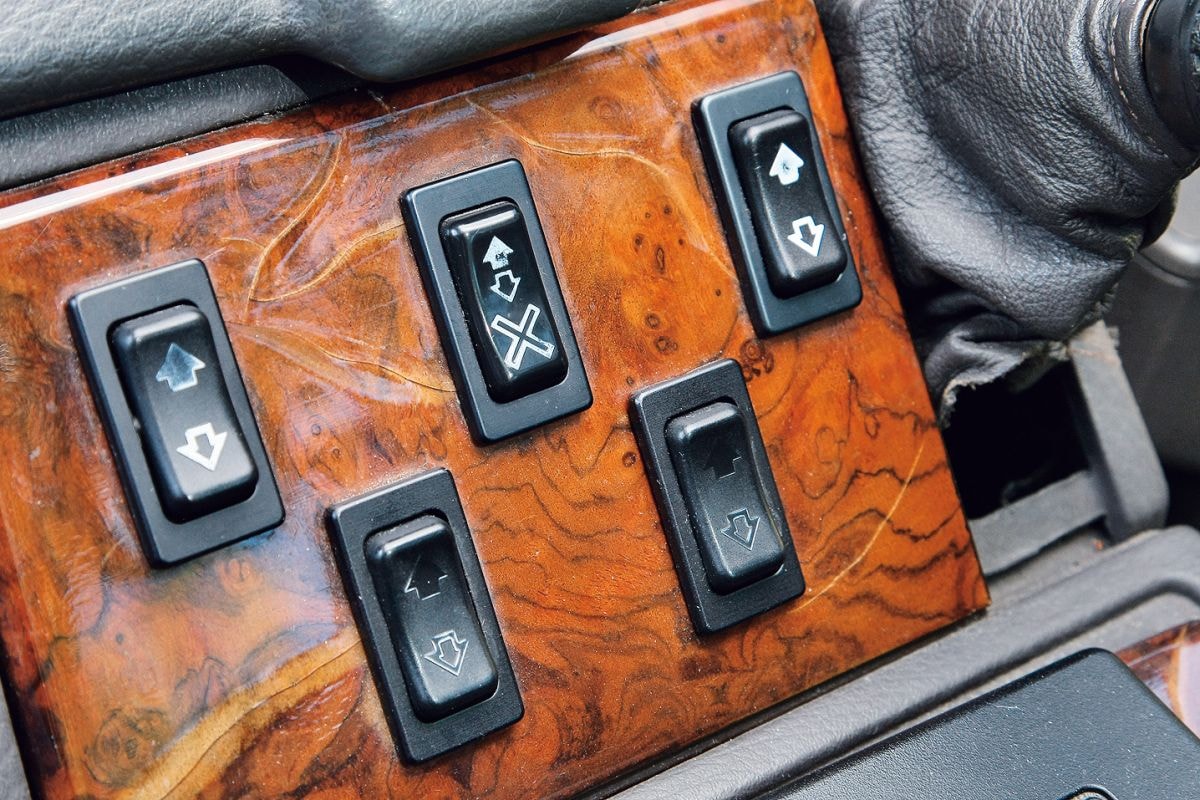 Het karakter van de achtcilinder past perfect bij deze auto. Die is vooral op comfort gericht, want sportieve ambities had de Range nooit. En bochten ziet hij als een noodzakelijk kwaad; de deftige Brit heeft hoofdzakelijk rechtlijnige opvattingen. Dat geldt ook voor de vormgeving – het licht ogende interieur is ingericht met krakende met leer beklede zetels en het instrumentarium lijkt op een soort kijkdoos. De bediening is soms behoorlijk verwarrend, terwijl de elektromotoren voor de stoelverstelling, raambediening en buitenspiegels hun beste tijd duidelijk achter zich hebben. Hij wordt wel oud op een stijlvolle manier, als was het een waxjas van Barbour. De Range Rover was niet de eerste luxe terreinwagen, maar wel de eerste luxe auto waarmee je het terrein in kon.