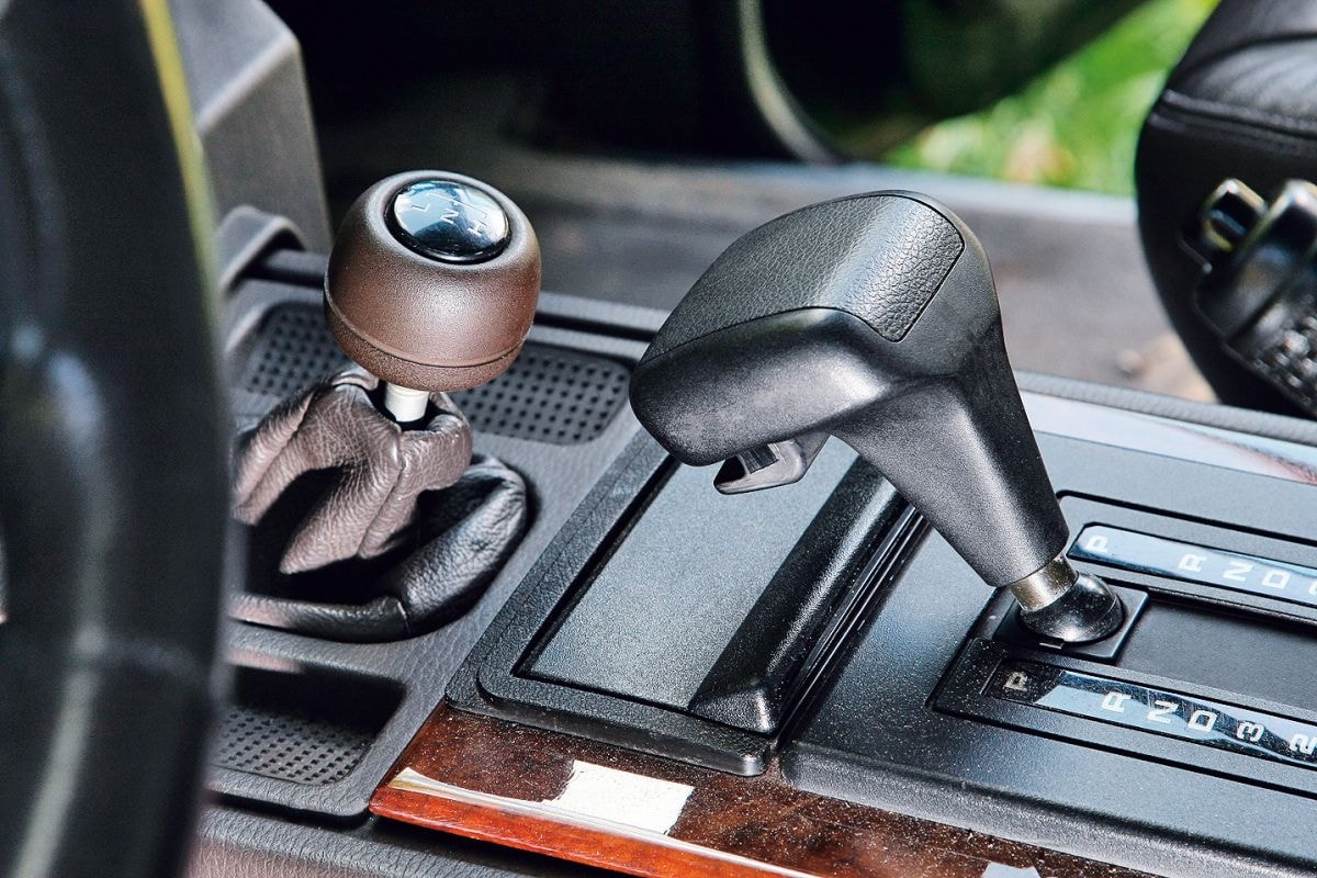 Terwijl carrosseriebouwers als Monteverdi al snel vierdeurs versies van de Range Rover lanceren, ziet de Land Rover Leyland Group pas in 1981 kans om een dergelijke uitvoering in productie te nemen. Ook met facelifts is het bedrijf niet bepaald scheutig. Geen wonder dus dat ook het exemplaar uit 1990 dat op deze pagina te zien is nog gebruik maakt van de techniek van de vroege modellen. Al die tijd is onder de motorkap de V8 met Amerikaanse genen te vinden, die bij de latere Range Rover Classics wordt opgeboord van 3,5 naar 4,2 liter en dan goed is voor 202 pk. Het vermogen wordt permanent doorgegeven aan alle vier de wielen, waarbij een sperbaar middendifferentieel toerentalverschillen wegneemt. Voor inzet buiten de gebaande paden kun je bovendien vertrouwen op een lage gearing. Samen met de starre assen die een grote wieluitslag mogelijk maken, is hij daarmee goed bewapend voor offroadwerk, bijvoorbeeld voor de bosweg waarop wij met de Range aan het rijden zijn. Links naast ons loopt een rivier, rechts zien we een steile rotswand en voor ons doemt een serieuze helling op die bezaaid is met kiezels. We hoeven alleen maar even te stoppen, de automaat in N te zetten, de lage gearing te kiezen en de eerste versnelling in te leggen.