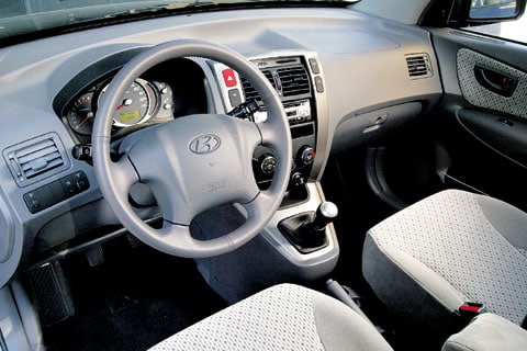 Het stuurwiel is slechts axiaal te verstellen, maar je krijgt het nooit lekker voor je neus. De in hoogte te variëren bestuurdersstoel staat bovendien ook in de laagste stand behoorlijk hoog, zodat je boven alles en iedereen uittorent, dus ook boven je stuur. Over ruimte zal zelden iemand klagen in de Hyundai. Die is ook naar keuze in te delen. De leuningen van de achterbank zijn in ongelijke delen neerklapbaar en ook verstelbaar. Klap de hele handel plat en de bagageruimte meet 1.865 liter (met de bank in z'n oorspronkelijke positie heeft de Tucson 644 liter). Wie de leuningen neervouwt, hoeft niet eerst ook nog de zittingen weg te klappen. Die zakken namelijk gewoon naar beneden, waardoor een vlakke laadvloer ontstaat. Lange bagage kan ook mee, want de rechtervoorstoel heeft ook een neerklapbare leuning. De Hyundai heeft een joekel van een achterportier. Gelukkig hoef je de klep niet voor ieder wissewasje te openen. Met een aparte knop ontgrendel je de achterruit, zodat je voor het laden van klein spul nauwelijks inspanning hoeft te leveren. ABS, airco, airbags voor en achter, zij-airbags, elektrisch verstelbare spiegels en dito bedienbare portierramen rondom, het is allemaal standaard, net als cruise control en lichtmetalen wielen.