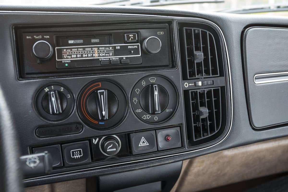 De tijd dat je een 900 Classic voor €500 bij een handelaar vandaan plukte, lijkt voorgoed voorbij. Een goede stijgt met het jaar in prijs, vooral als het een Turbo is. Dat is de Saab die wij rijden niet, integendeel zelfs, het is de basisversie. Toch staat er GL op de achterklep en het moet gezegd: hij ziet er niet uit als een eenvoudige instapversie, met hier en daar wat chroom, getint glas en een mooi interieur. De kleurencombinatie is allesbehalve saai. Deze 900 is iets meer dan 37 jaar geleden door dealer Lenderink (Enschede en Hengelo) nieuw afgeleverd aan zijn eerste, Nederlandse eigenaar en heeft dus nog zijn originele kenteken. Het dashboard is verrijkt met een achteraf gemonteerde toerenteller, een gewild accessoire in die tijd. We zijn nog meer gecharmeerd van die glasheldere, grote VDO-klokken met hun markante feloranje wijzers: klok, snelheidsmeter en een combi-instrument voor brandstofvoorraad en koelvloeistoftemperatuur. Dit exemplaar heeft 194.000 kilometer op de teller staan en heeft inmiddels al lang een nieuwe eigenaar gevonden.