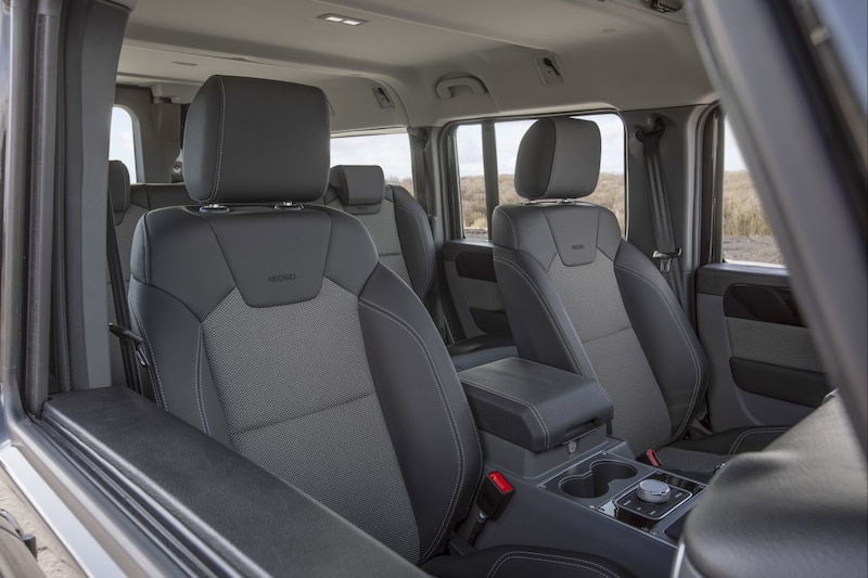 Op een landgoed ergens ten zuidoosten van Brussel mogen we op de passagiersstoel van een handgebouwd prototype in de wielsporen van Ratcliffe treden. Het dashboard is volgeplakt met allerlei waarschuwingsstickers, maar geeft een goed idee hoe de productieversie eruit gaat zien. De knoppen op de middenconsole en het knoppencluster tegen het dak roepen associaties op met een oud vliegtuig, ook al komt de ontwerper ervan uit de nautische hoek. Het oogt stoer, industrieel en vooral oersolide. Ondertussen beukt en bonkt de zware Ineos door gaten en kuilen, klautert hij tegen steile hellingen op en daalt hij met hetzelfde gemak weer af. De ondergrond is na twee dagen stevige regen getransformeerd tot een natte en gladde brei van klei en steen. Zoals viel te verwachten, ploetert de Grenadier er met speels gemak doorheen. Zo nu en dan lijkt een stuk rots het ladderchassis aan stukken te rijten, maar volgens de vrouw achter het stuur hoeven we ons geen zorgen te maken. De zescilinder benzinemotor heeft ruim voldoende koppel. Voor iemand die zich niet dagelijks door heuvelachtig gebied en via amper begaanbare bospaden voortbeweegt, zijn de prestaties indrukwekkend.
