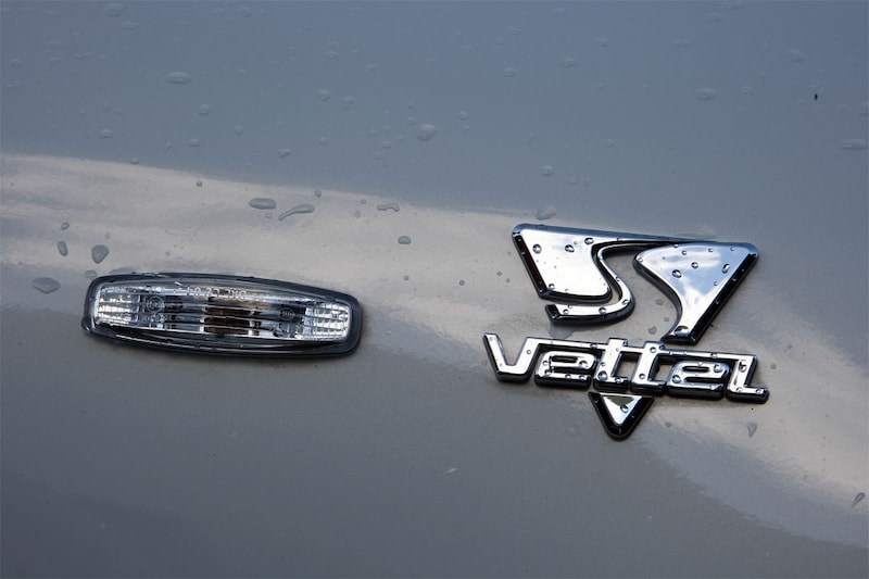 Koolstofvezel is het magische woord bij deze speciale FX50, het is de link naar de Formule1, waar dit lichte en ijzersterke materiaal veelvuldig wordt toegepast. Infiniti gebruikt het op onder andere de grille, voorspoiler, spiegelkappen, zijskirts en op diverse plaatsen in het interieur. Verdere gewichtsbesparing komt op het conto van de wielen; de 21-inch BBS'ers wegen per stuk 3,5 kilo minder dan de standaardexemplaren. Leuk natuurlijk, die afgesnoepte kilootjes maar op een standaard wagengewicht van dik twee ton zijn het druppels op een gloeiende plaat. Gelukkig levert de vijfliter V8 voldoende vermogen en koppel om er evengoed lekker de gang in te krijgen. Met 390 pk en 500 Nm is de 'gewone' FX50 al geen stakker, Sebastian Vettel kreeg er nog 30 pk en 20 Nm bij, onder andere dankzij een nieuw uitlaatsysteem. Zodoende zit je in 5,6 seconden op de 100 en dendert het gevaarte door tot 300 km/h, 50 km/h harder dan de standaard-FX. Dat is gewoon achterlijk snel voor een SUV van dit formaat en je moet dit soort auto's dan ook niet met een kórreltje zout nemen maar met een complete zoutvlakte. Over de top in het kwadraat. De sensaties voor de bestuurder vallen overigens mee - of tegen, net hoe je het bekijkt. De V8-brul blijft binnenin redelijk op de achtergrond, ook na het indrukken van het geheime, lichtgevend blauw omrande knopje naast de asbak (zie foto voor uitleg). Dat dit geen sportwagen maar 'gewoon' een bizar snelle SUV is, blijkt ook uit de besturing, die best wat scherper en directer had mogen zijn. Kun je daar voor de productiestart misschien nog even kritisch naar kijken, Sebastian?