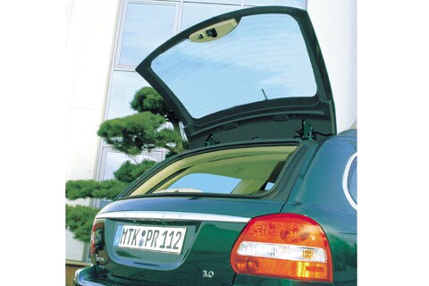 De zijkant is 44 mm verlengd en eindigt bij de achterklep die is voorzien van een apart te openen achterruit. Beide werken met gasveren. De achterpartij is behoorlijk afgerond en het dak is afgewerkt met een spoilertje, waarin het derde remlicht en de ruitensproeier zijn opgenomen. De dakrails zijn uiteraard standaard. Jammer dat de styling van die achterkant niet wat eigenzinniger is. De Estate mist daardoor persoonlijkheid. Iets beter werkt de verchroomde bies die op de duurste uitvoering tussen de achterlichten zit, maar de achterkant blijft desondanks opvallend onopvallend.
