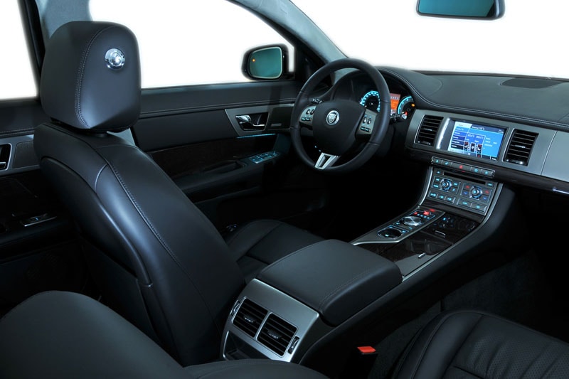 Ondanks de inspanningen van het merk om BMW te lijf te gaan met de XF, komt de auto op het dynamische vlak nog wel wat tekort om het de Müncheners lastig te maken. De XF is voorzien van adaptieve dempers die de carrosseriebewegingen 100 keer per seconde checken, maar weinig doen om het rollen van het koetswerk in bochten efficiënt tegen te gaan. Je kunt daar iets aan doen door een zogenaamde 'dynamic mode' te selecteren via de Drive Control, waarbij tevens de motorelektronica en de automaat worden aangescherpt, maar het onderstel zou gerust nog een tandje straffer mogen zijn. Bovendien laat het driespaaks stuur zich wat te licht ronddraaien zonder veel gevoel met het wegdek te bieden. Echt direct is hij evenmin, en hij voelt wat kunstmatig aan. Nee, als we de XF moeten duiden, is het eerder een tegenhanger van de Mercedes E-klasse. Hij biedt namelijk een heerlijk veercomfort, dat zelfs hobbelige wegen aangenaam weet te maken. Samen met de rust in het interieur (mede door de nieuwe gelamineerde voorruit) en de werkelijke fantastische motor-/bak-combinatie maakt dat de Jag tot een uitmuntende reisauto, waar ook de perfect zittende stoelen en het ruim ogende interieur een steentje aan bijdragen. En je hebt zicht op een ongekend chic ogend interieur, dat je dankzij het nieuwe Portfolio-programma verregaand naar eigen smaak kunt aanpassen. Ook nieuw zijn de optioneel leverbare achteruitrijcamera en Blind Spot Monitor die de dode hoeken in de gaten houdt.