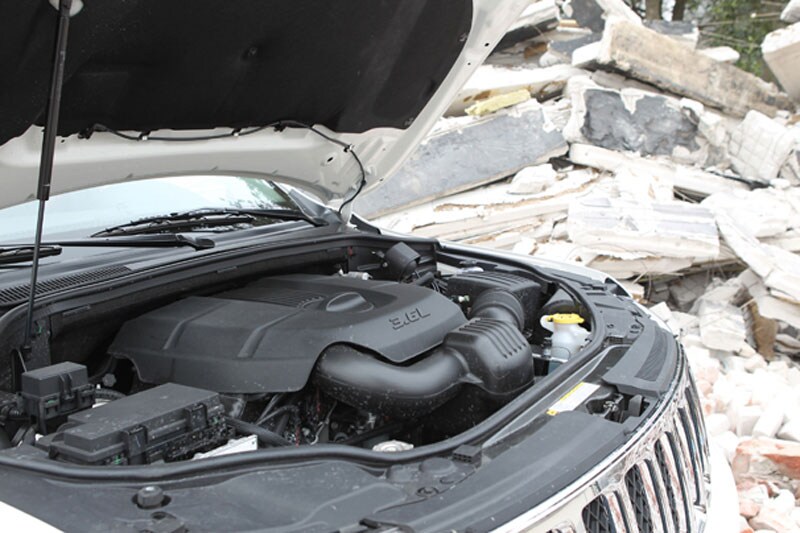Onder de motorkap van de Jeep zit een nieuwe Pentastar-V6 met een inhoud van 3,6 liter. Hij mag dan variabele kleptiming hebben, directe inspuiting is niet aanwezig. Wel biedt hij een zijdezachte loop, fraaie klanken en goede prestaties. Minder gecharmeerd zijn we van de automatische vijfbak. Hij schakelt wel vloeiend, maar bij terugschakelen heeft hij soms wat veel tijd nodig.