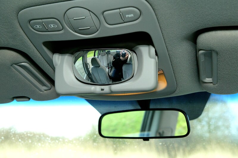 achterin vinden we naast de stoelen bekerhouders en diepe opbergvakken. De ramen in de achterportieren kunnen volledig open en de twee laatste zijruiten hebben een ventilatiestand. En de Carnival heeft nog een paar leuke snufjes, zoals de elektrisch te openen schuifdeuren.