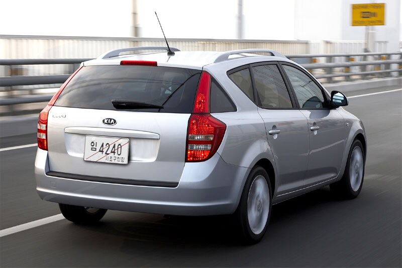 Om de kansen verder te verhogen, breidt het Koreaanse merk het Cee'd-gamma uit. Een driedeursversie staat in de startblokken, en in augustus komt de stationwagonvariant, de Sporty Wagon. Hij wordt gebroederlijk naast de hatchback gebouwd in de Kia-fabriek in Zilina, Slowakije. De typenaam doet een beetje denken aan een tekenfilmfiguur, maar voor het overige is de auto zeer serieus te nemen. De Sporty Wagon is op dezelfde technische leest geschoeid als de vijfdeurs hatchback waarmee we al hebben kennisgemaakt. De modellen hebben een gelijke wielbasis en zijn tot en met de achterportieren identiek. Maar de stationwagon is 10 millimeter hoger en 235 millimeter langer dan de hatch. De toename in lengte zit achter de achterwielen. Aan de achterkant doet de Sporty Wagon sterk denken aan Peugeots 407 SW, met z'n Z-vormige C-stijl en de ver in het dak doorlopende achterklep. Waarom zou je het wiel opnieuw uitvinden, hebben ze waarschijnlijk gedacht bij Kia, en terecht. De scharnieren van de klep zijn ten opzichte van die van de Cee'd hatchback 225 millimeter naar voren in het dak gemonteerd, waardoor de toegang tot de kofferbak groter wordt en deze eenvoudiger te beladen valt. De kofferklep neigt bovendien minder ver naar buiten bij het openzwaaien, en loopt hierdoor een kleinere kans vast te lopen op de neus van een krap op de kont van de Cee'd geparkeerde auto.