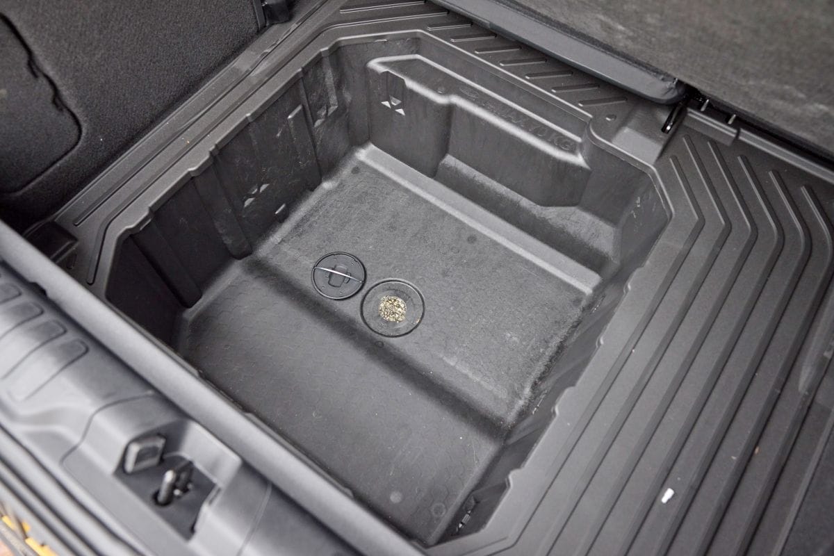 Het lijkt een detail, maar voor mensen met natte of modderige hobby’s is het aantrekkelijk: de Mega-Box van pakweg 80 liter onder de kofferbak. Deze is van kunststof en de klep kun je tijdens het laden gemakkelijk vastzetten. Onderin zit een stop, waardoor je eventueel aanwezig water er gemakkelijk uit kunt laten lopen. Je kunt natuurlijk ook andere zaken in deze ruimte kwijt.