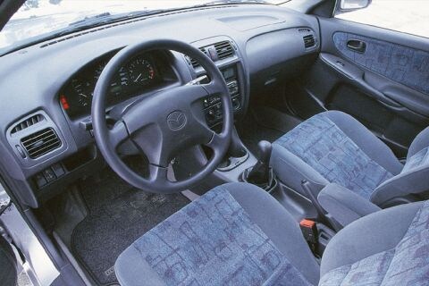 Meer auto dan een compact en een stapje lager dan de topklasse. Deze middenklasser opereert in een behoorlijk druk bezet gebied en moet overal aan voldoen. Hij moet eigenlijk iedereen kunnen plezieren. Op elk onderdeel worden steeds zwaardere eisen gesteld. Economisch verantwoord, voldoende ruim, toch ook leuk om te rijden, ze moeten er goed uitzien maar niet te veel opvallen: ga er maar aan staan! De verrassing is: hij komt hierin heel ver. Hoewel, verrassing? De 626 heeft zijn sporen in de zakenautowereld natuurlijk inmiddels wel verdiend en rij je hem als privé-auto, dan rij je er ronduit "knap" bij. Want de GLX-versie is aardig compleet, al kan bijvoorbeeld de airco beter. Verder is "t bijna niet meer van deze tijd dat de airbag rechts niet standaard is en alleen in combinatie met zij-airbags geleverd kan worden. Uniek van de uitrusting is de passagiersstoel voor, die tot tafeltje omgeklapt kan worden. Verder is de achterbankzitting ook in z"n geheel omklapbaar. Voor verhuisklusjes, zeg maar. N-g een prettig Japans trekje uit het verleden: een variabele interval voor de ruitenwissers voor. En letten we nog even op de prijs? Deze 626 kost nog geen 44 mille.