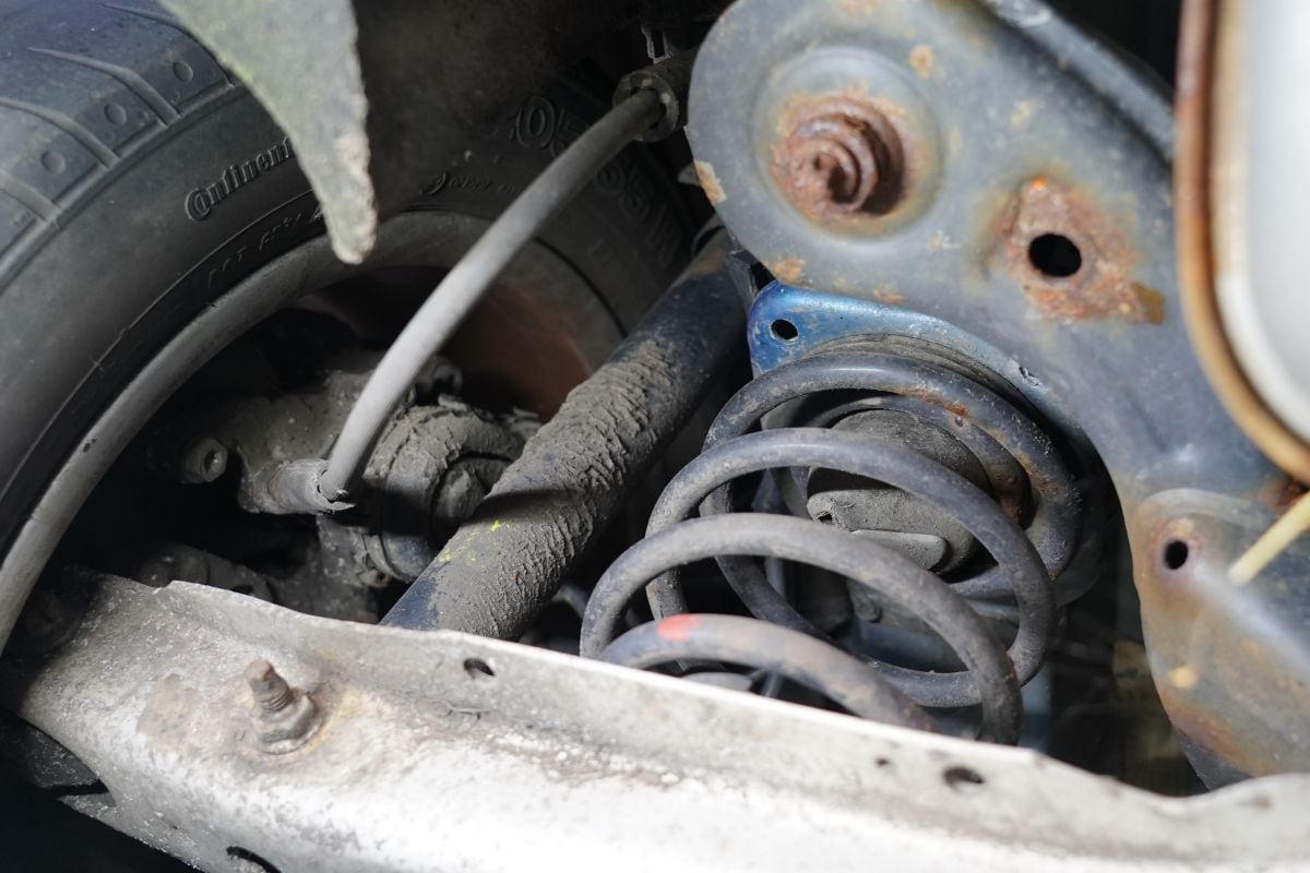 Veren en dempers traditiegetrouw gescheiden. De A-klasse heeft geen last van gebroken veren.