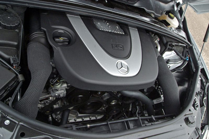 De V6 levert 272 pk en 350 Nm. Daarmee sprint de R 350 in 8,5 tellen van 0-100 km/h en da's rap voor zo'n mastodont. De sprint van 50 naar 80 valt met 4,2 seconden wat tegen, dat is niet echt snel. Wanneer we bij 80 volgas geven, duurt het 7,3 seconden eer je 120 rijdt en dat is relatief gezien een betere waarde. De V6 blijft qua geluid keurig op de achtergrond, ook als 'ie vol aan de bak moet.