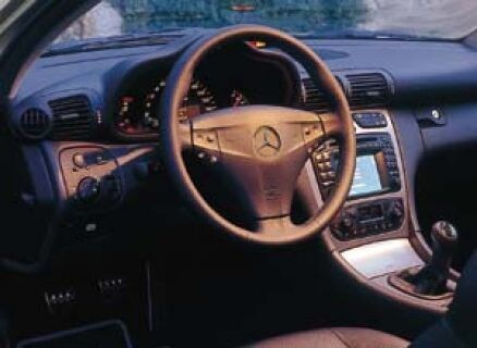 Werkelijk heel anders is de carrosserie. Natuurlijk is de C-klasse Sportcoupé meteen herkenbaar als een Mercedes en z'n dubbele koplampen met in elkaar over vloeiende ovalen verraden ook dat hij een C is. Maar behalve de buitenspiegels waarin de knipperlichten zijn opgenomen hebben de koetswerken van de C-klasse Sedan en de Sportcoupé niets gemeen. Om te beginnen is de sportieve C 18 centimeter korter dan het model waarop hij is gebaseerd. Dat heeft niets te maken met de wielbasis, want die bleef met 2,72 m precies gelijk. Maar in de achtersteven werd flink 'gehakt'; bijna 22 ging er af. Zo ontstond het model dat de designers voor ogen hadden; een ontwerp waarbij een korte, hoge achterkant contrasteert met een lange aflopende neus. De Sportcoupé kreeg daardoor een duidelijke wigvorm met een sterk oplopende taillelijn. Als resultaat daarvan zijn de achterste zijruiten klein en valt het uitzicht naar achteren nogal tegen. Niet dat de achterruit klein is uitgevallen, maar hij ligt hoog en vlak. Om het zicht naar achteren te verbeteren kreeg de coupé een doorzichtige strip onder de achterspoiler mee. Die - donkere - strip vormt trouwens ook een optische verbinding tussen de achterlichtunits. Maar om nu te zeggen dat je er veel aan hebt, bij het achteruit rijden; nou nee.